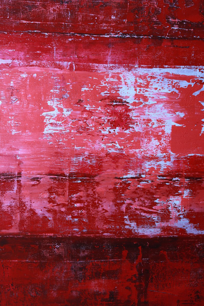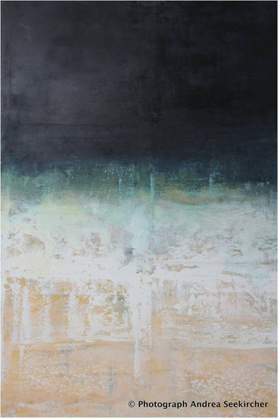 In oft wochenlangen Prozessen des Schaffens und Geschehenlassens reifen die Werke. Dabei geschieht stets ein Loslassen mit abermaligem Farbauftrag - dabei verwende ich häufig Spachtel und andere Techniken, verändere immer wieder die Oberfläche, zerstöre und baue wieder auf, bis das Werk zum Stillstand kommt.