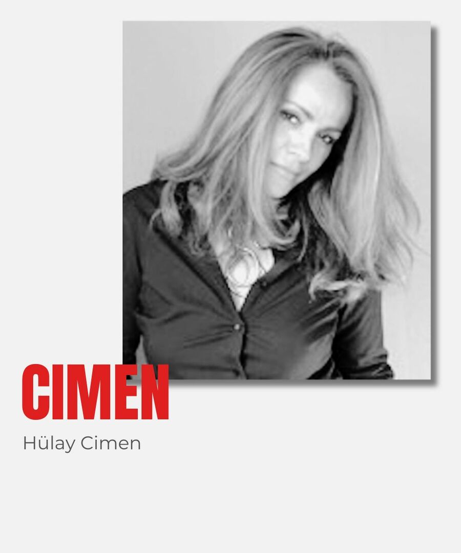 Hülya Cimen bricht in ihren Bildern das Schweigen, dass sie als erdrückende Macht in einem patriarchalischen und muslimischen geprägten Umfeld erlebt und als Jugendliche mit dem Wechsel von der Türkei nach Deutschland noch deutlicher durch die Erfahrung von Gegensätzen und Gegensätzen und Verhaltensdifferenzen gespürt hat. Diese Spannung entlädt sich vor allem in ihren Collagen mit Text- und Bildfragmenten, die in gebrochenen Tönen und verwaschenen Energiefarben die im auferlegten Schweigen unterdrückte Empfindung in aller Stille der Kompositionen ausdrücken. Die Freiheit der Entfaltung als Frau ist verbunden mit einer frühen Seherfahrung der Pop-Art und ihrer Werbe- und Zeitungsbilder integrierender Collagetechniken.
